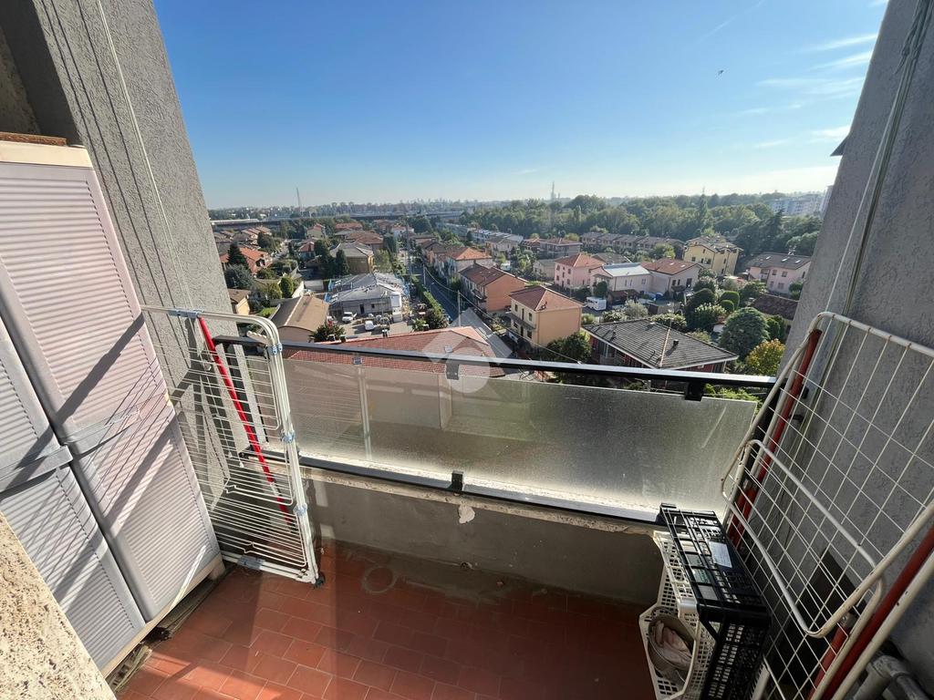 Posto all’ottavo ed ultimo piano con esposizione prevalente a sud-est, l’appartamento gode di una eccezionale luminosità e di un altrettanto notevole panorama da tutti i locali che lo compongono. La soluzione si presenta con ingresso su uno spazioso disimpegno che permette l’accesso a tutti i locali: ampio soggiorno, cucina abitabile, bagno finestrato con cabina doccia, cameretta e camera matrimoniale. La cucina ed il soggiorno sono dotate di porta-finestra che consentono l’accesso al balcone che permette, nelle belle giornate, una visione completa su tutta la zona compresa fra Milano e Paderno Dugnano.