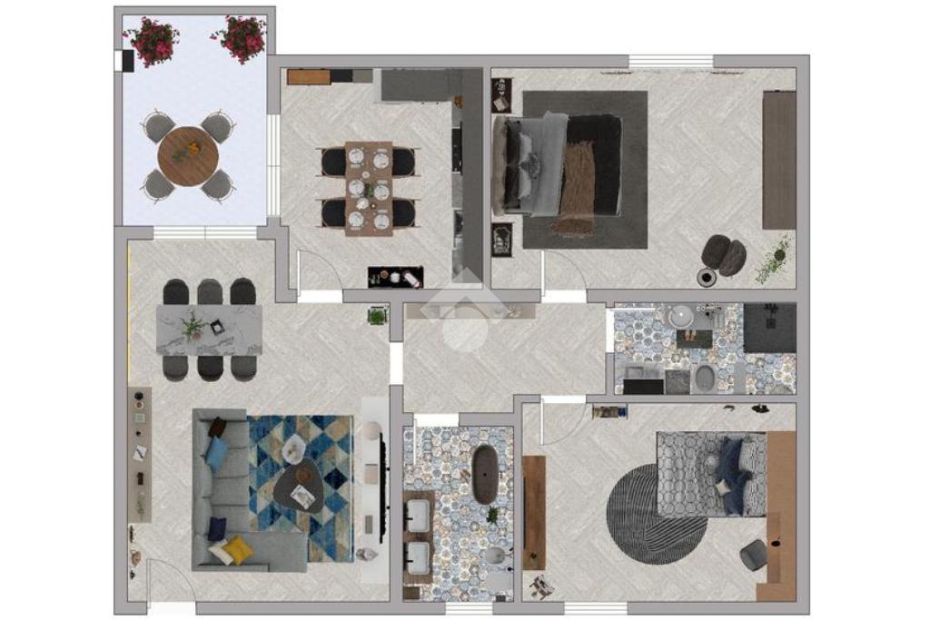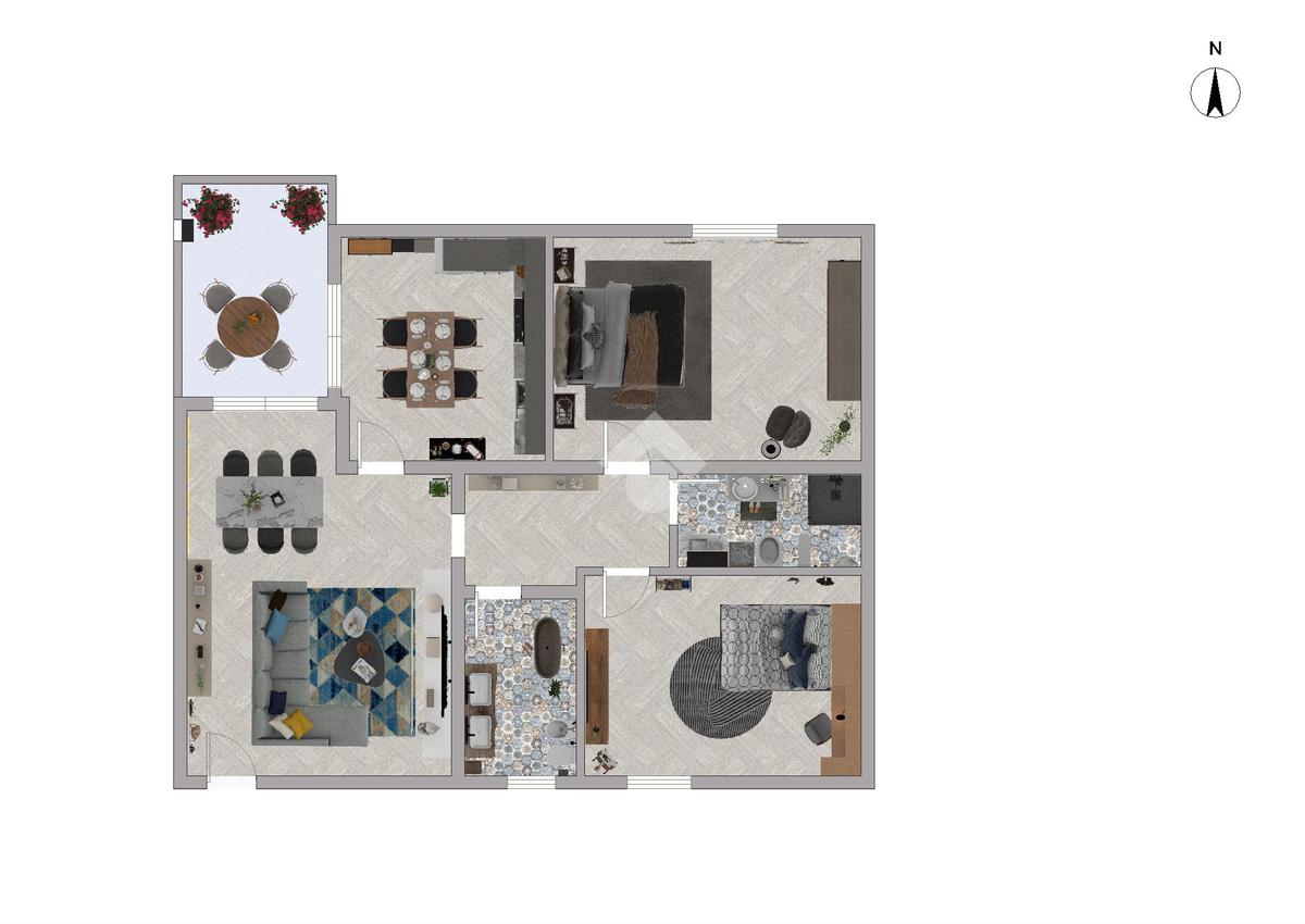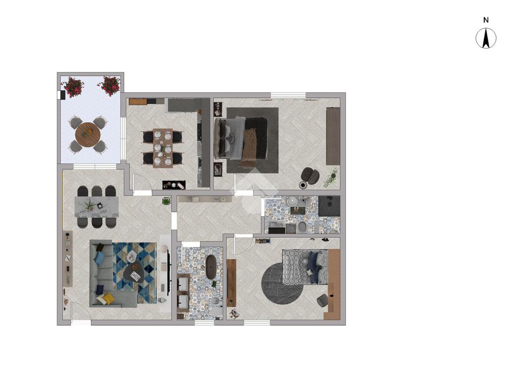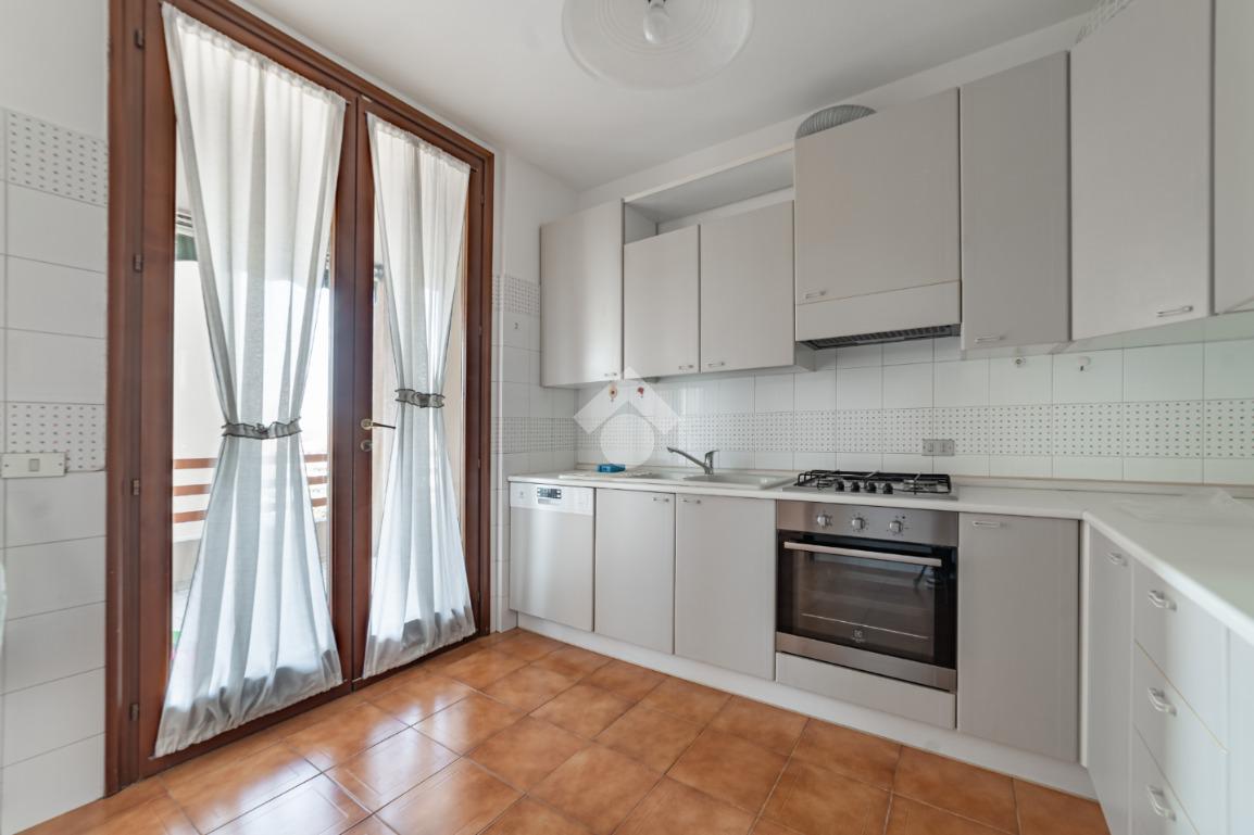 Posta ad un piano intermedio con doppia esposizione (nord - sud), la soluzione si presenta con ingresso sul soggiorno dal quale si accede sia alla cucina pienamente abitabile che ad un funzionale terrazzino coperto e pienamente sfruttabile, disimpegno che porta alla zona notte, camera matrimoniale, bagno finestrato con vasca, cameretta ed un ulteriore bagno cieco con cabina doccia.